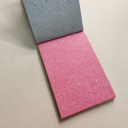 About material: handmade recycled papers suitable for everyday use, compatible with pens and ink pens with no bleed-through,