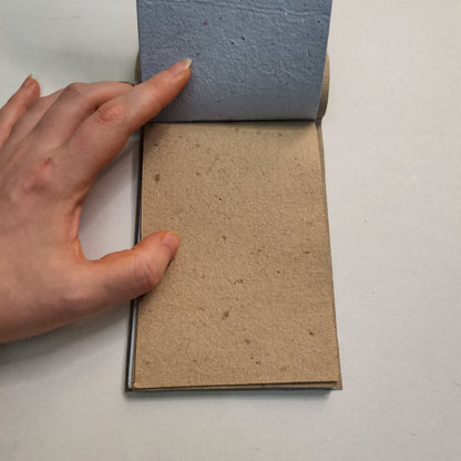 About material: handmade recycled papers suitable for everyday use, compatible with pens and ink pens with no bleed-through,