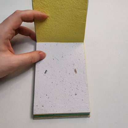 About material: handmade recycled papers suitable for everyday use, compatible with pens and ink pens with no bleed-through,